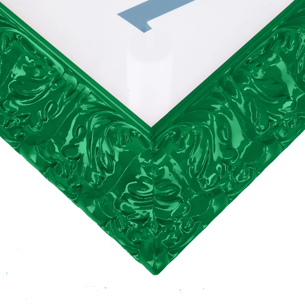 Barock war noch nie so modern! Dieser aussergewöhnliche Bilderrahmen verbindet klassische Eleganz mit einem frechen, poppigen Twist. Das leicht geschwungene, breite Profil ist detailreich verziert mit floralen Ornamenten im klassischen Barockstil – doch die knallbunte Lackierung in 55 kräftigen Farben verleiht ihm einen funky, poppigen Charakter.